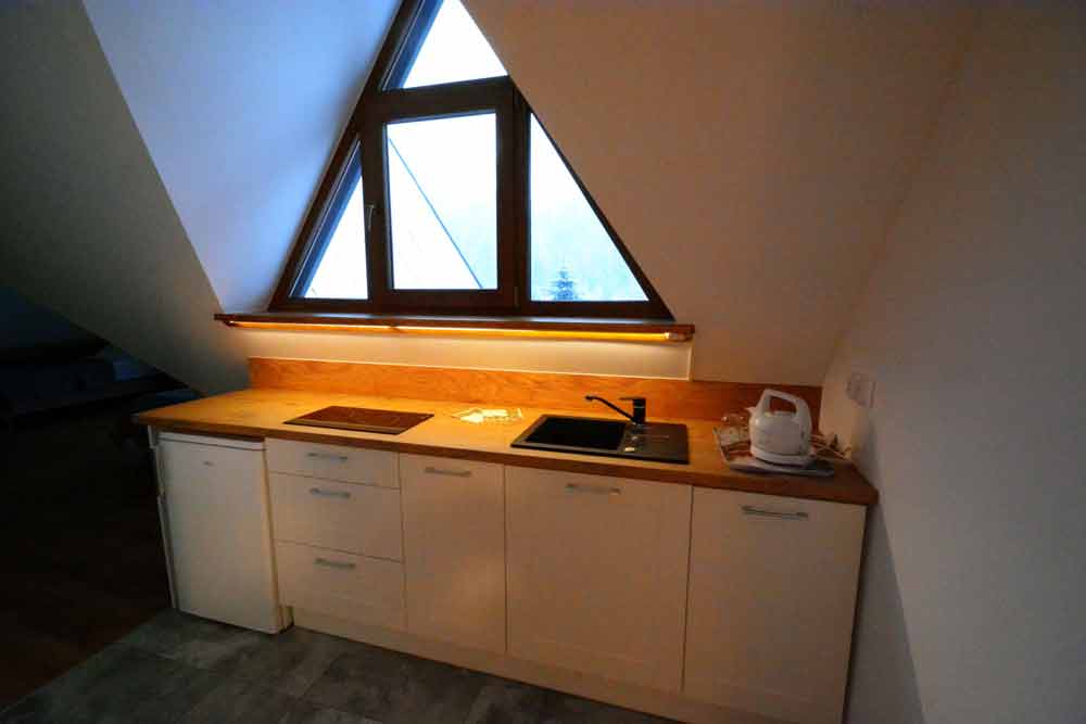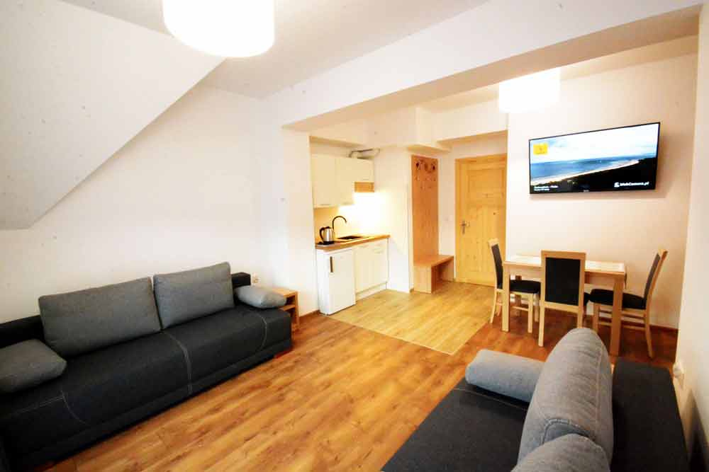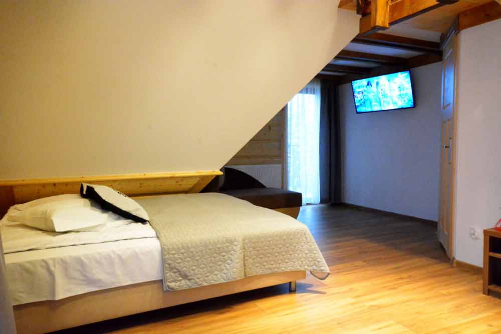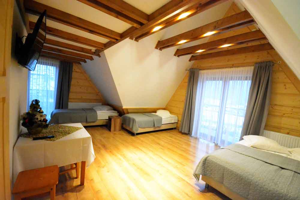 Poronina. 400 m, 4 km do centra Zakopaného, 3 lyžiarske vleky v Poronine v zime, prvý 400 m (Galicowa Grapa), druhý 800 m (Suche Ski Station), tretí 1000 m (stanica Harenda), vedľa lyžiarskeho
